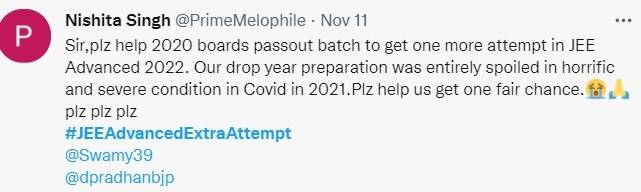 The demand was made citing reasons that students could not attempt the exam as public transport was hit due to Covid-19 pandemic or they could not prepare well as coaching centres were shut and everything was online and they did not have devices or proper internet connection. Meanwhile, Twitter is strife with JEE Advanced candidates asking for an extra attempt. Check below the reactions of the students.