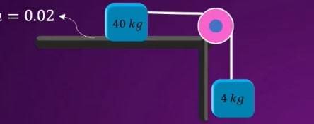 If the coefficient of friction between 40 kg block and horizontal surface is 0.02, then find the acceleration of the system.