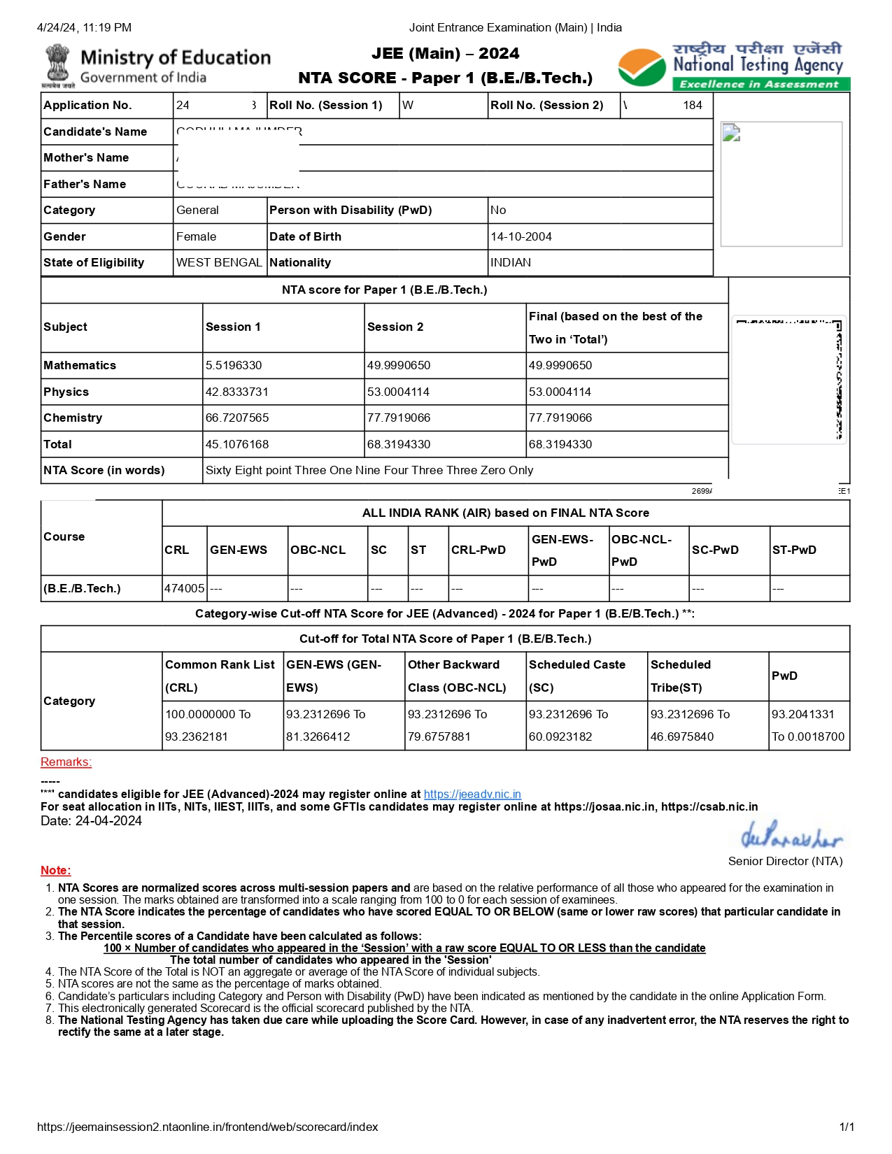 JEE Main 2024 Result OUT - Details on JEE scorecard