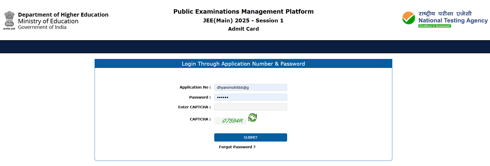 | JEE Main login time |