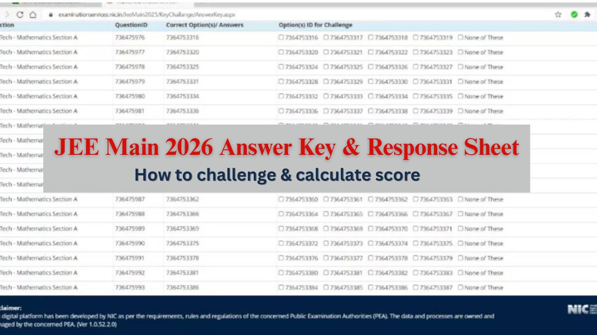 Check below how the answer keys and response sheet of JEE Main 2026 differ: