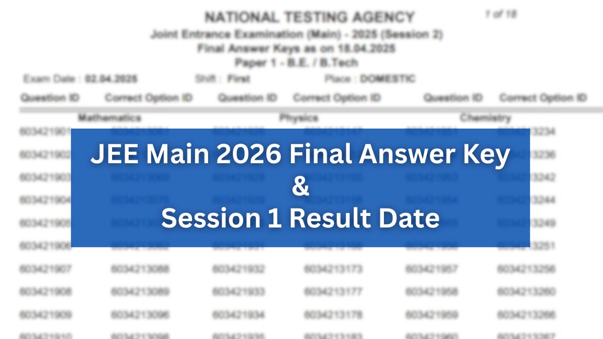 The JEE Main 2026 final answer key is expected to be released anytime soon on the official website. After this, NTA will announce the JEE Main 2026 session 1 result by February 12. Candidates who appeared for the exam are eagerly waiting for the final answer key because it will be used to prepare the result.