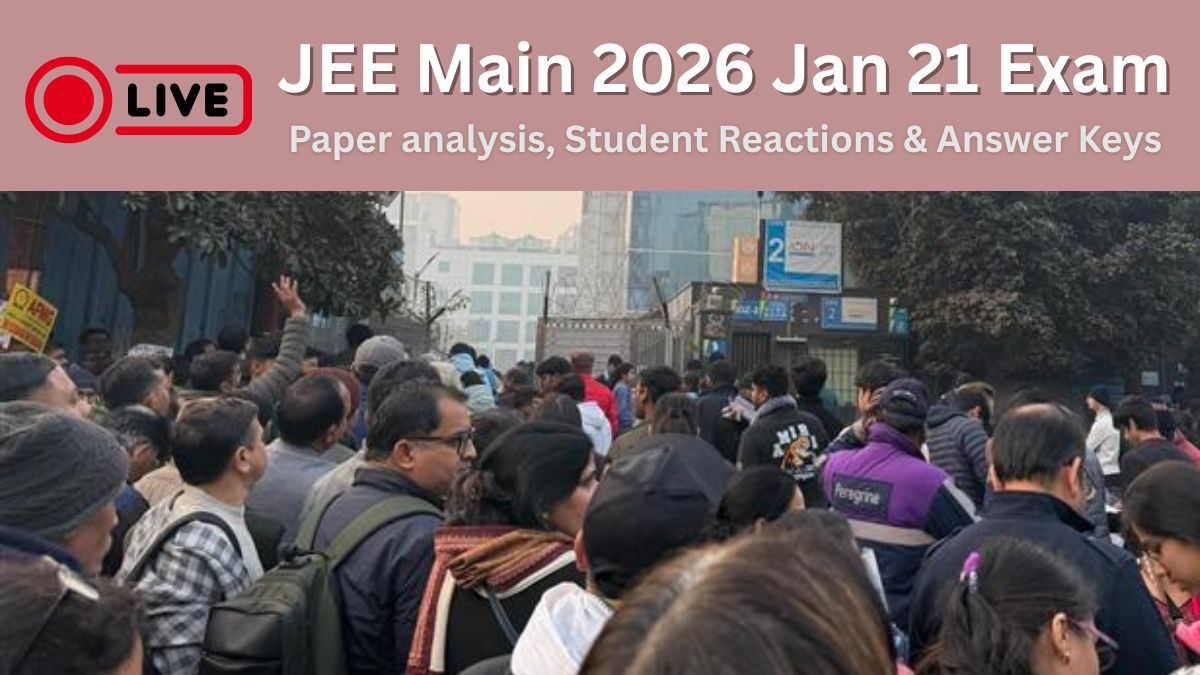 NTA is all set to start the day 1 of JEE Mains 2026 exam from TODAY, January 21. NTA will be verifying the identity of the candidates at the exam hall before entry at centre. There will be frisking and biometric verifications. Catch here live updates on JEE Main 2026 day 1 exam, including reporting time, essential documents to carry, dress code, student reactions, paper analysis, memory-based answer keys, questions with solutions and more.