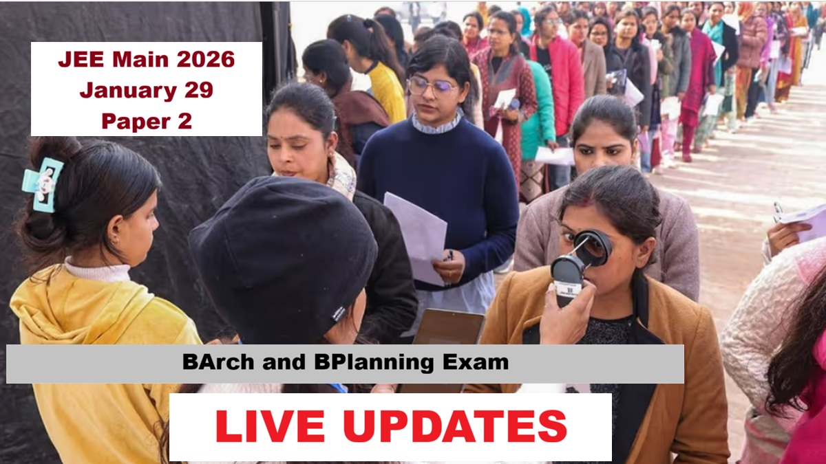 JEE Main 2026 January 29 Paper 2 Live Updates: NTA will conduct the JEE Main 2026 BArch exam in a single shift. JEE Mains 2026 Paper 2 will be conducted on January 29, 2026, from 9:00 AM to 12:30 PM. After the exam concludes, the JEE Main 2026 BArch exam memory-based question paper with solutions will be provided here. Candidates can also check the JEE Mains 2026 BPlanning questions with the answer key on this page. JEE Mains 2026 Paper 2 Analysis and students' reaction will also be updated after the exam.