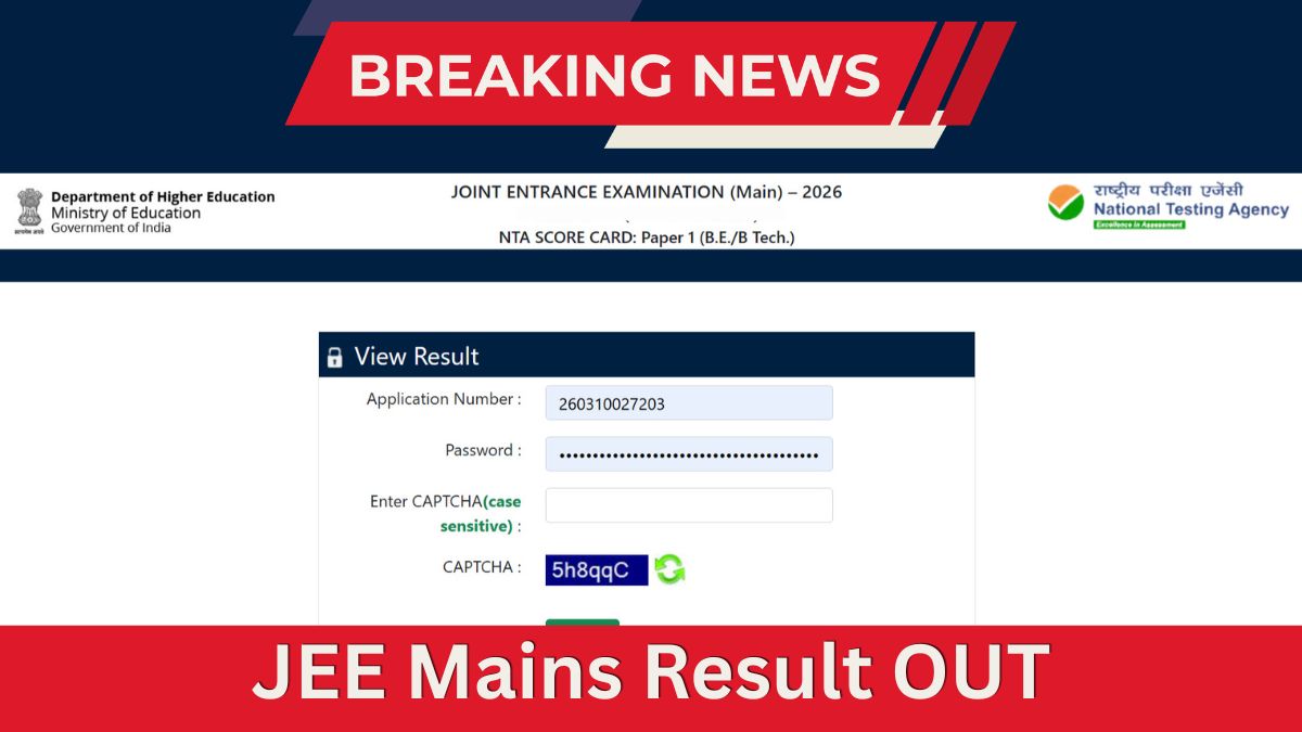 The National Testing Agency (NTA) has released the JEE Mains session 2 result 2026 at jeemain.nta.nic.in. The candidates can now access their final scorecards using their application number and password. Along with the result NTA has released the JEE Mains 2026 cutoff for IIT JEE Advanced qualification, All India Ranks of the candidates and the toppers. Check live updates on the NTA JEE result 2026 below.