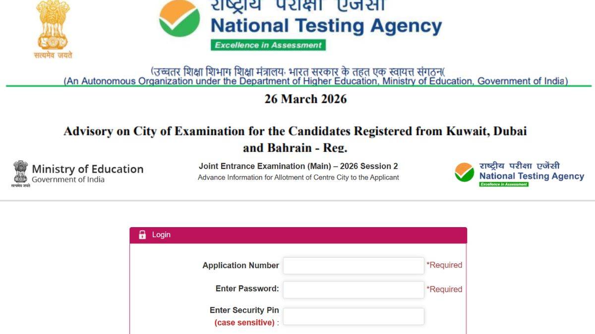 JEE Main city intimation slip for candidates in Kuwait and Dubai is out now. Candidates can check the JEE Main 2026 city intimation slip to find out where their exam will be held. Check further details below.