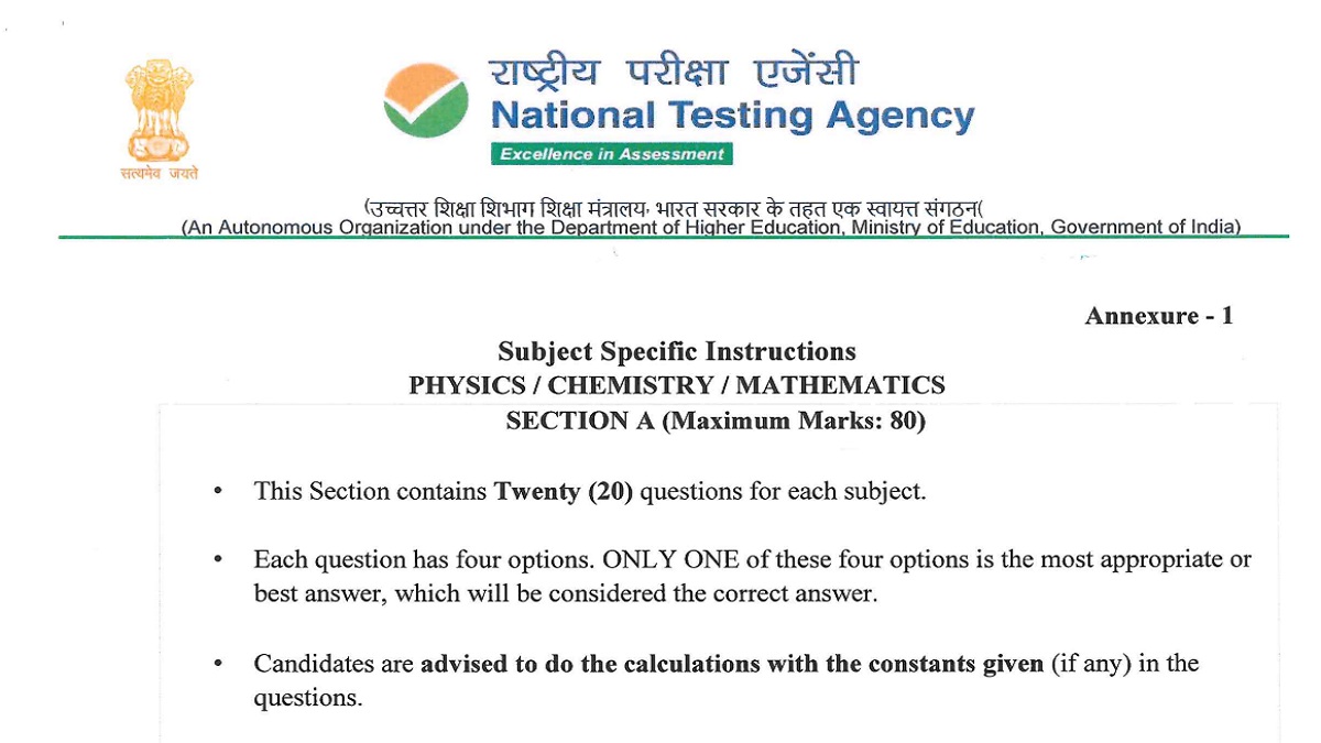 JEE Main 2026: National Testing Agency has released subject-specific guidelines for JEE Main 2026 as session 1 exam begins tomorrow. Candidates appearing for JEE Mains have been advised to go through instructions related to their chosen paper and subject combination to ensure smooth exam process. The JEE Main 2026 subject-wise guidelines have been provided below. These are also aligned with instructions mentioned in information bulletin of JEE Main 2026.Â