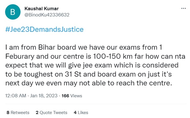 Read More: JEE Main 2023 just a week away, students continue to demand postponement