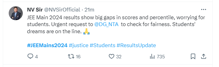 Amid the JEE Main 2024 result declaration, many students have raised concern on social media regarding uncertainty in scores. Applicants are raining raising concern in JEE Main 2024 result percentile calculation. The major concerns are raised from students who appeared in the JEE Main 2024 exam on January 27 & 29.