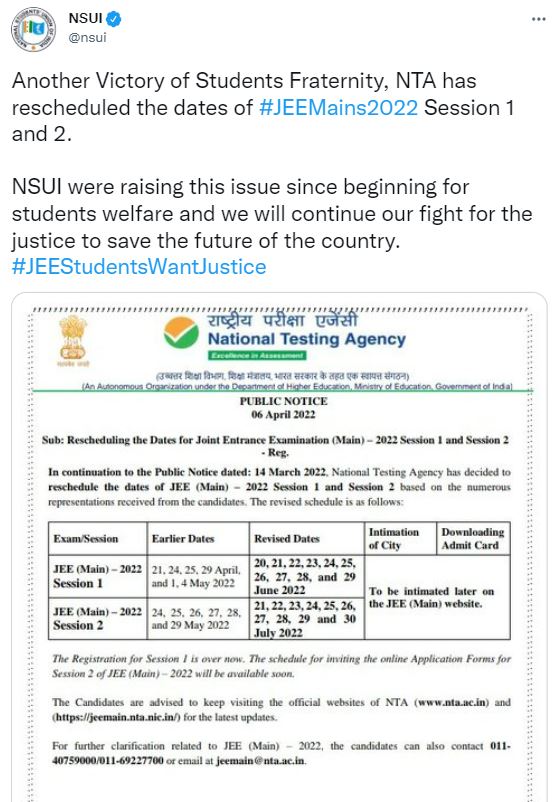 JEE Mains 2022 dates revised: #JEEStudentsWantJustice campaign won says aspirants amid celebration