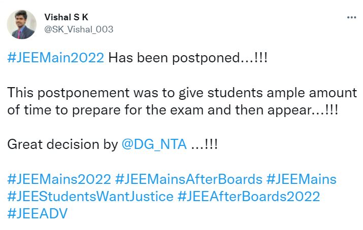 Following all the struggles and campaigns, NTA finally released the notification regarding the postponement of JEE Mains 2022 along with JEE Mains 2022 revised dates. JEE aspirants across Twitter are celebrating their victory. Checkout some of the reactions: