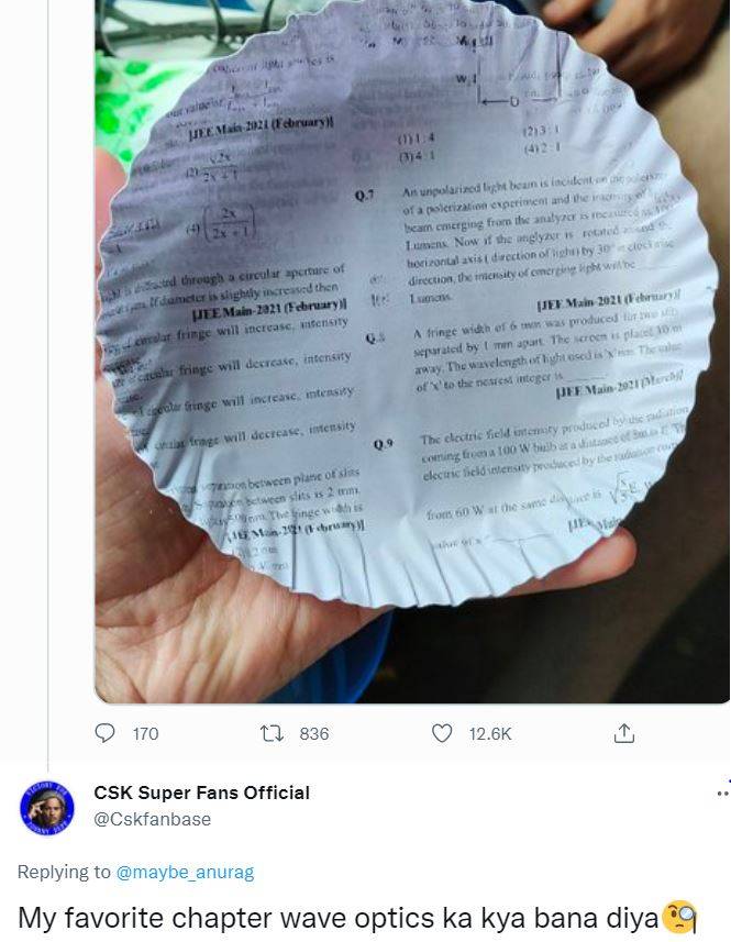The viral post has left netizens in splits clamoring for solutions to the visible questions, while others are thinking of yummy snacks that could be served on this plate. Let us take a look at some of the reactions that JEE Mains question paper turned snack plate received on Twitter.