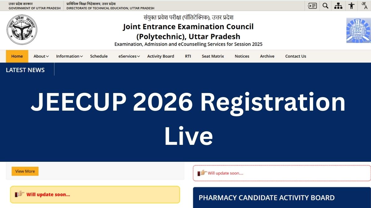 The Joint Entrance Examination Council, Uttar Pradesh (JEECUP) is set to begin the JEECUP application form 2026 process from tomorrow, January 15, 2026. The authorities will activate the JEECUP registration link on the official website, jeecup.admissions.nic.in. Candidates seeking admission to diploma courses in engineering, technology, pharmacy, and other polytechnic programmes in Uttar Pradesh can apply online once the registration link is activated. The direct link to apply for UP Polytechnic 2026 will be updated on this page as well.