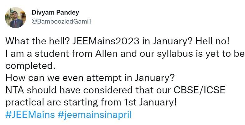 Check out some of the tweets demanding JEE Mains 2023 in April below: