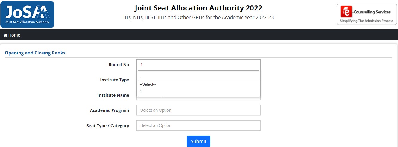 JoSAA 2022 Cutoff Round 2: How to check opening and closing ranks?