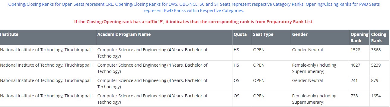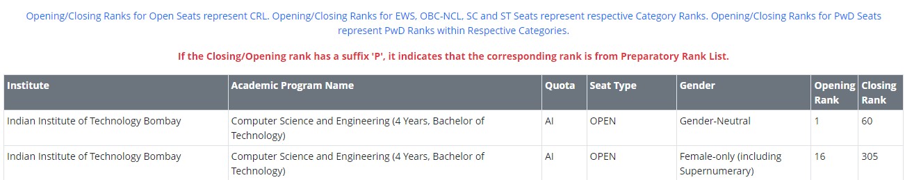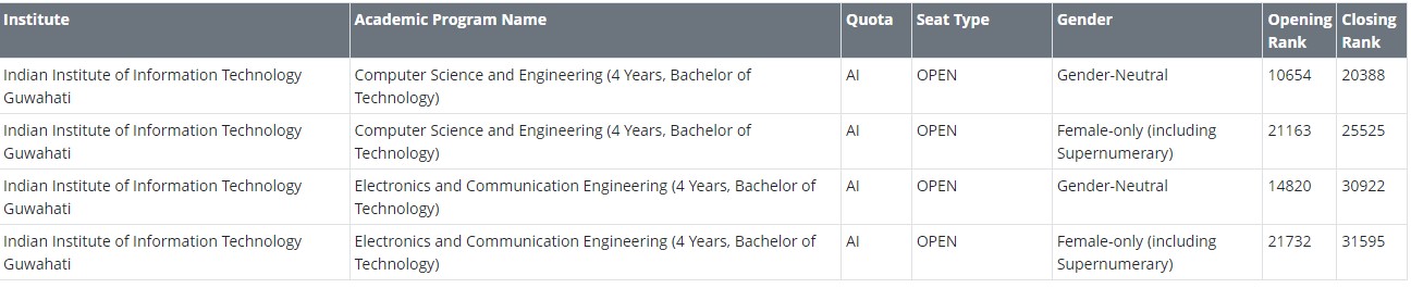Candidates can check the opening and closing ranks of IIIT Guwahati below: