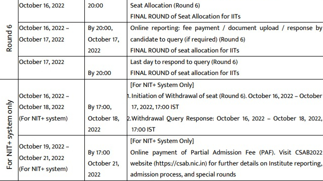 JoSAA 2022 schedule - Round 5