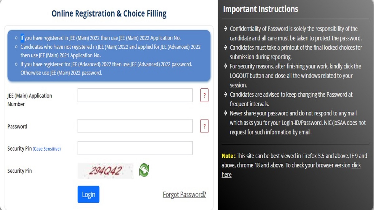 JoSAA 2022 registration: Important instructions