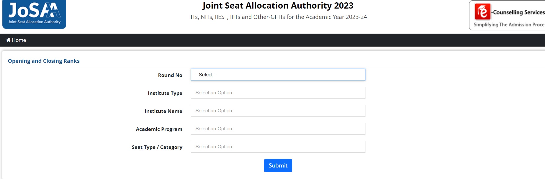 Scroll down for the opening and closing rank of JoSAA 2023 Round 3 by following the steps: