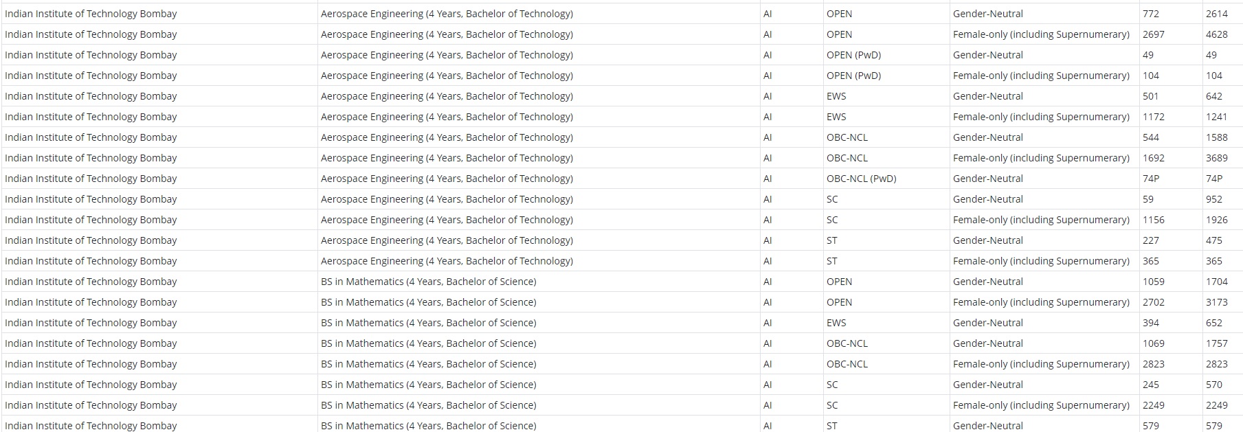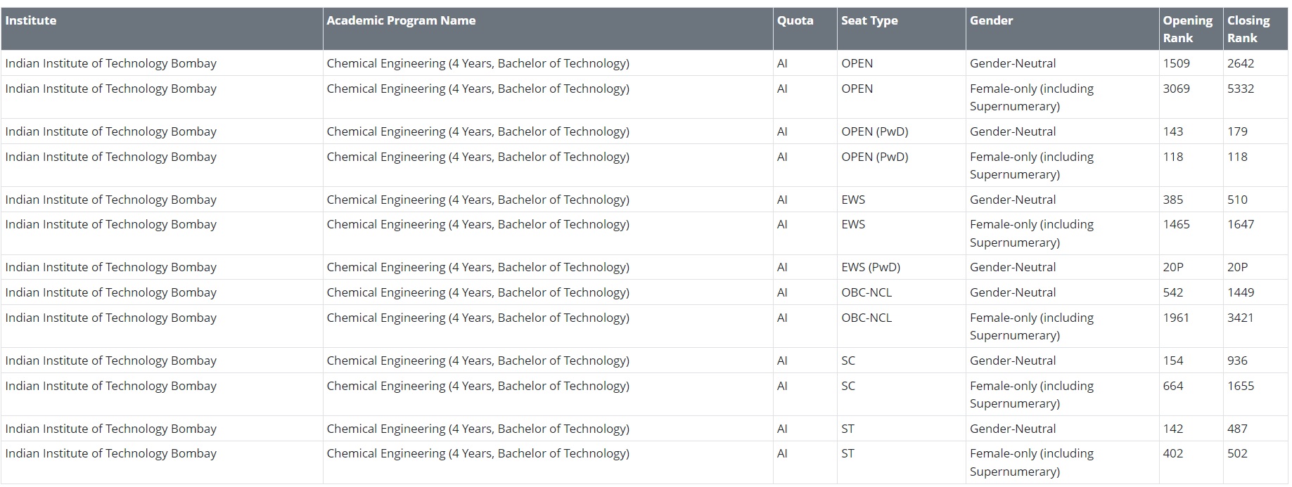 - Closing Rank: The highest rank eligible to secure admission in any of the IITs.