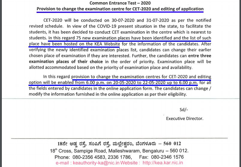 In the view of COVID-19, KEA has decided to identify 75 new exam centres to conduct KCET 2020. Aspirants willing to change their exam centre can choose the nearest exam centre by using the KCET 2020 application form correction link. KEA will upload the list of the new exam centre on its official website i.e. https://cetonline.karnataka.gov.in/kea/. Aspirants can change enter three exam centres of their choice in order of priority. Check more details related to the application correction and exam centre on this page below.