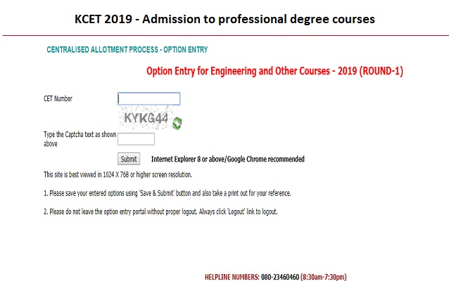 KCET counselling 2019 - Online choice filling begins