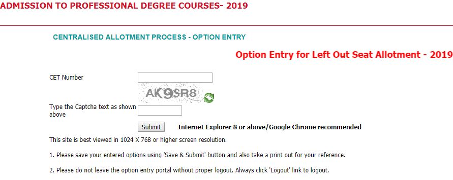 Step 3: Enter your CET number and captcha code and submit