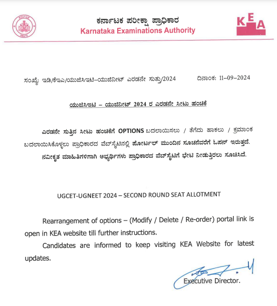 Karnataka Examination Authority will soon release the KCET 2nd round seat allotment result at the official website. The authorities will release the KCET seat allotment 2024 based on options filled by candidates at the time of option entry. Candidates need to enter their CET number to check KCET counselling 2024 seat allotment. Β