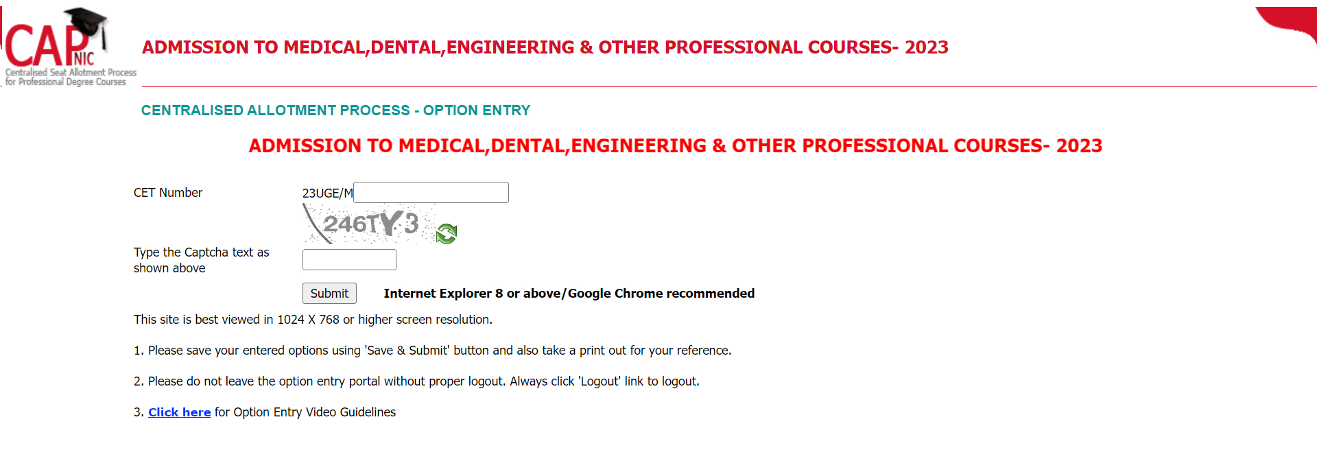 KEA KCET Option Entry 2023: Karnataka Examination Authority commenced the KCET 2023 option entry at the official website. Eligible candidates can complete the KCET option entry at kea.kar.nic.in. Applicants need to fill their preferred choices of colleges and courses at the time of KEA option entry 2023. Candidates are required to enter their CET application number to complete KCET 2023 option entry. The last date to complete the KCET option entry 2023 is August 9.