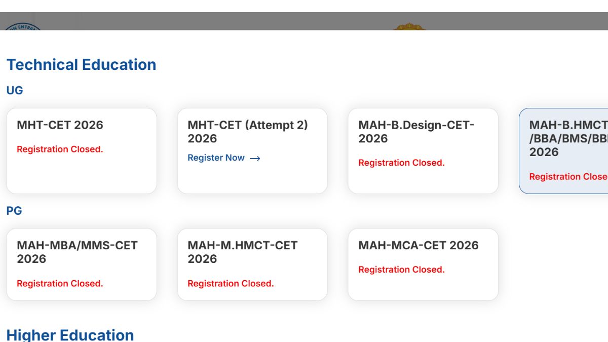 The Maharashtra State Common Entrance Test (CET) Cell has started the MHT CET 2026 registration for second attempt today, April 15. Candidates who have obtained a minimum of 45% marks in class 12th can apply for the test. The registration is open for both the PCM and PCB groups.