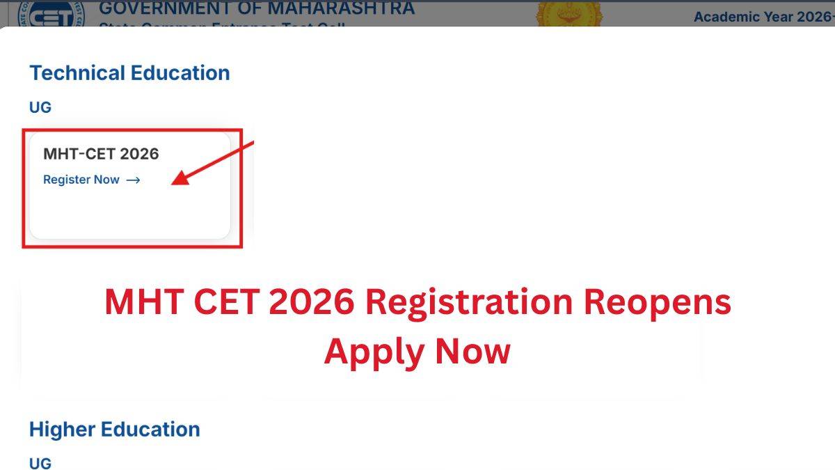 The State Common Entrance Test Cell, Maharashtra, has reopened the registration process for MHT CET 2026. Candidates who missed the earlier deadline now have another chance to apply for the Maharashtra Common Entrance Test. The authorities will close the MHT CET 2026 registration link on March 20. Moreover, the fee payment deadline is the same as the registration deadline.