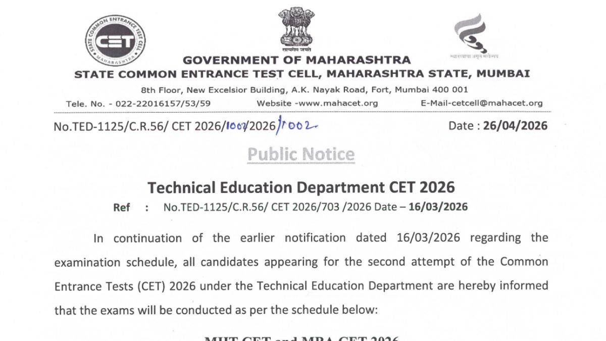 The final MHT CET exam date 2026 for the second attempt has been announced. Candidates can check the schedule for both the PCM and PCB groups. This is the first time the CET Cell is offering a second attempt for the MHT CET exam. Check the updated schedule below.
