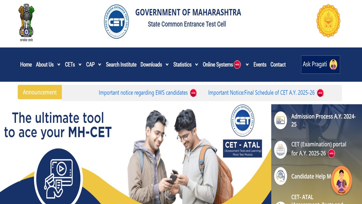 - Visit the official website of MHT CET 2025 at cetcell.mahacet.org.