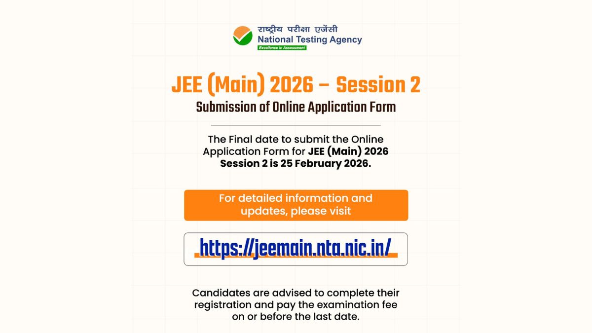 JEE Mains session 2 application form is available online at jeemain.nta.nic.in until today, February 25. No extension of the registration deadline will be provided to students, as confirmed by NTA. Read more details below.