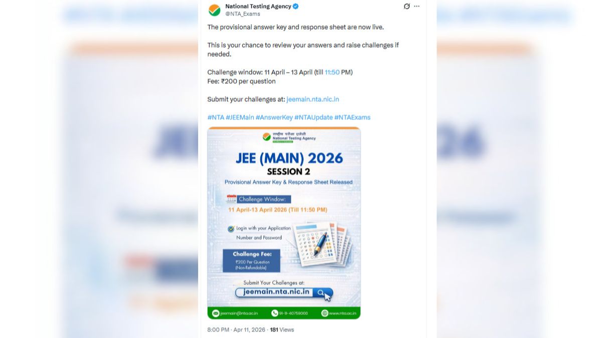 The National Testing Agency (NTA) has created confusion among candidates regarding the release of the JEE Main 2026 Session 2 answer key. Recently, NTA shared a post on X (formerly Twitter) stating that the JEE Main 2026 answer key, response sheet, and objection window were live. However, no such update was available on the official website at that time.