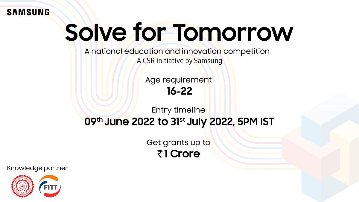 The interested youth who are between 16 and 22 years of age can apply for Solve for Tomorrow till July 31, 2022, up to 5 pm. They can apply here: www.samsung.com/in/solvefortomorrow.