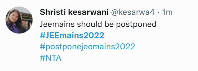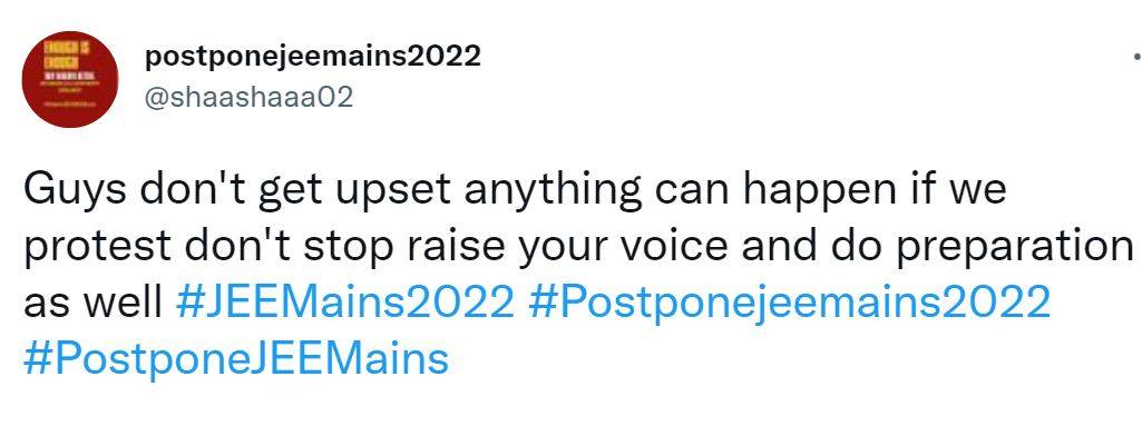 JEE Mains 2022 admit cards are available for download on the JEE Main 2022 official website. Candidates will have to log in on the website using their application number and date of birth/password to download the JEE Main 2022 Admit Card session 1. However, engineering aspirants are still hopeful that NTA would listen to their miseries and would decide to postpone JEE Mains 2022. Letβs take a look at some of the tweets posted by students: