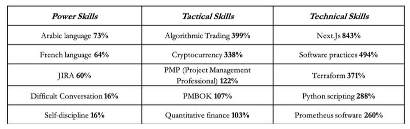 The top surging skills in India across power, tactical and technical disciplines included: