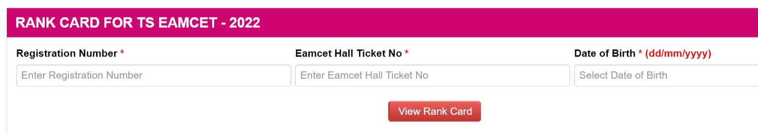 Here is the direct link for TS EAMCET 2022 rank card download: https://eamcet.tsche.ac.in/TSEAMCET/EAMCET_RankCard_2022rk.aspx