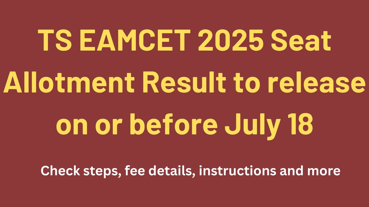 TS EAMCET 2025 Seat Allotment Result to release on or before July 18: Check steps, fee details and more