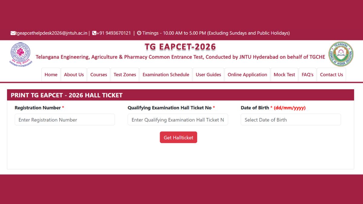 TS EAMCET Hall Ticket 2026 LIVE: TGCHE will release the TG EAPCET admit card 2026 at eapcet.tgche.ac.in. The candidates who have completed the application process will be able to download the admit card using their registration number, qualifying exam admit card number, and date of birth. The TS EAMCET admit card will be available today, April 27, and candidates will be able to download it until the exam date.