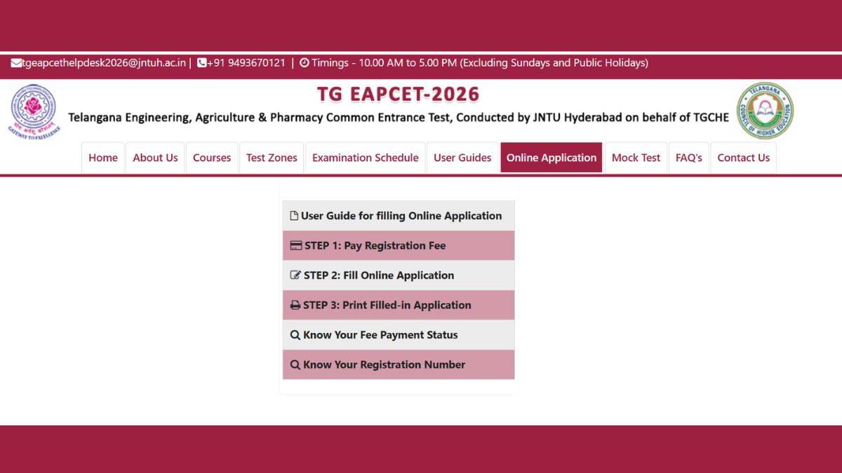JNTUH has started the TS EAMCET 2026 form correction facility. The candidates who have submitted the TS EAMCET 2026 application form can edit the details in the form by logging into the official website, eamcet.tsche.ac.in.