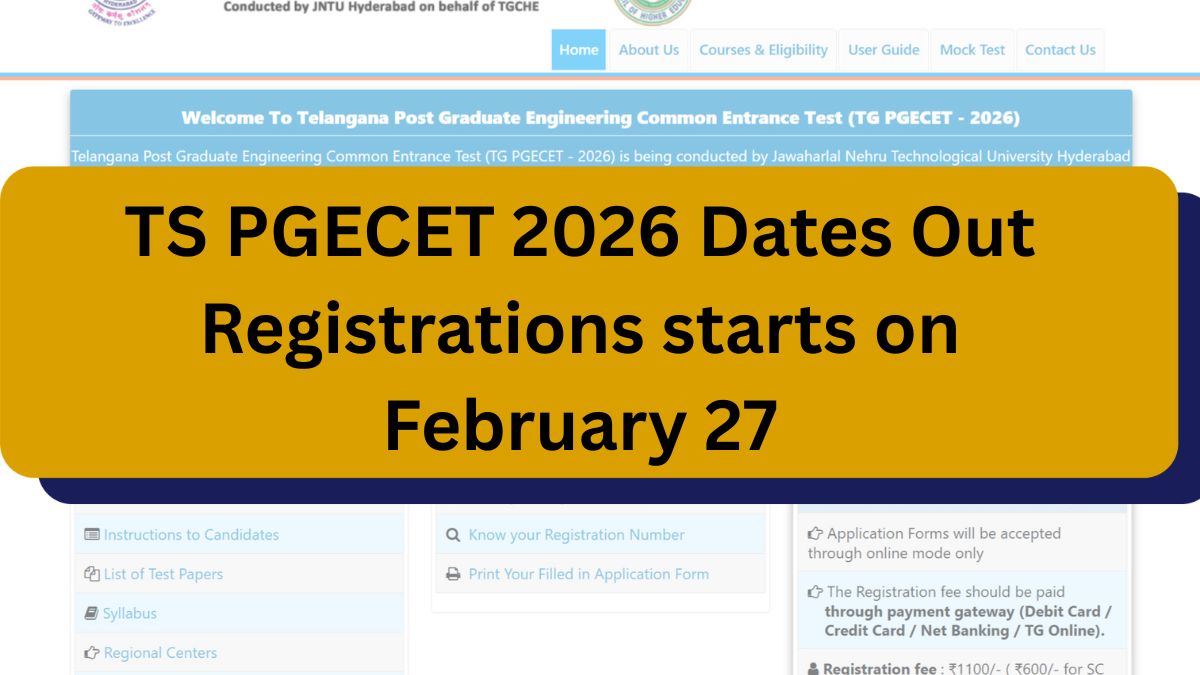 JNTU Hyderabad has released TS PGECET 2026 datesΒ for admission on its official website - pgecet.tgche.ac.in. Registrations for MTech admission will begin on February 27. Check TS PGECET 2026 exam date, along with form process, fees, etc.Β