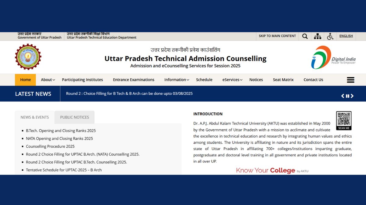 UPTAC Counselling 2025 Round 2 Allotment OUT; Seat Acceptance Fee Payment Deadline August 7