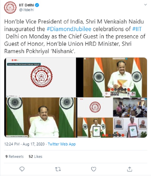 Vice President virtually inaugurates IIT Delhi's Diamond Jubilee Celebrations