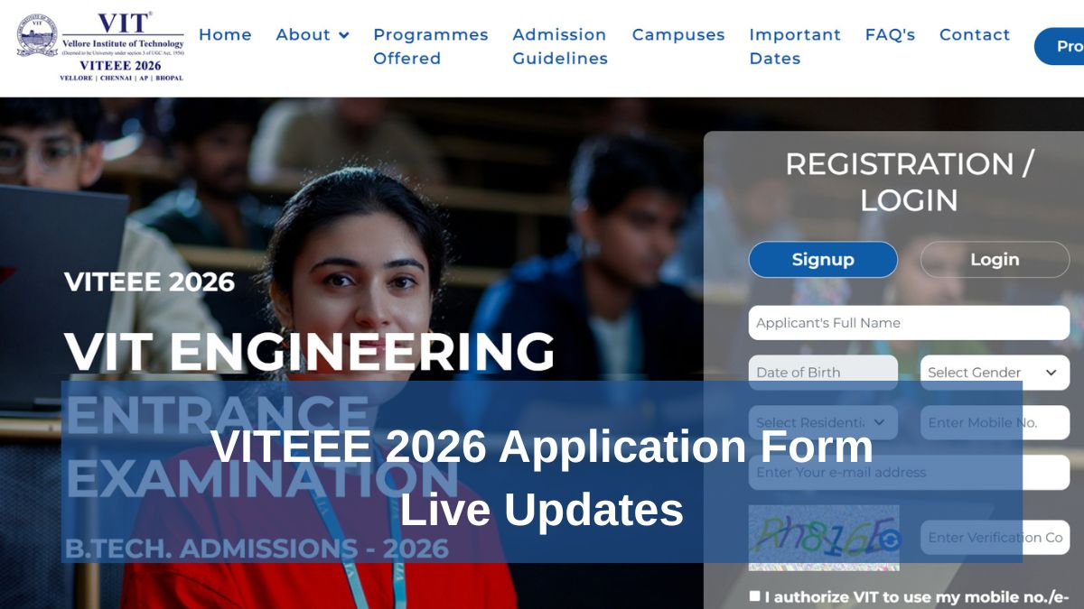 VITEEE 2026 Application Form Live Updates: Candidates willing to take admission at Vellore Institute of Technology can now apply for VITEEE exam 2026. Online application forms are available at VITEEE 2026 official website- viteee.vit.ac.in. The VITEEE 2026 application form last date to apply is March 31, 2026. Candidates meeting the eligibility can visit the website and apply before the due date. Before VITEEE 2026 registration, the candidates should check the official eligibility criteria.