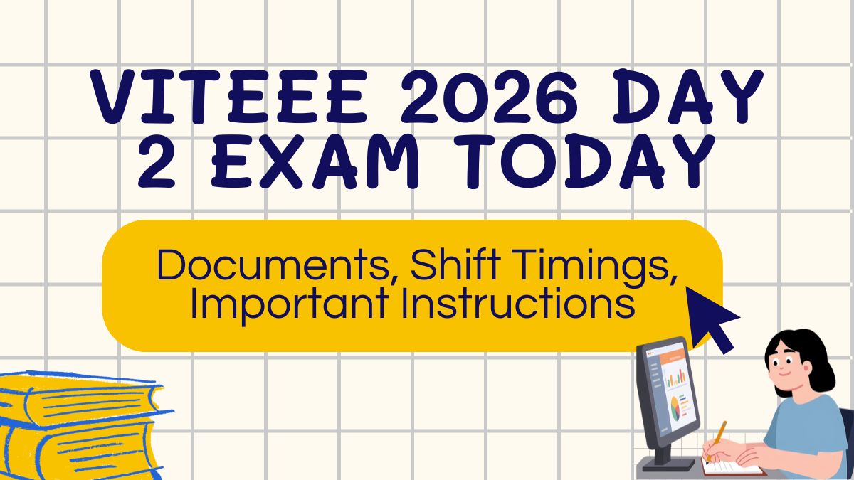 Day 2 of VITEEE 2026 exam begins today. After a successful exam on first day, that saw thousands of applicants across India, the computer-based test resumes to take place at designated centres across India and abroad. Check required documents, VIT shift timings, instructions, and key takeaways from previous VITEEE 2026 exam paper.