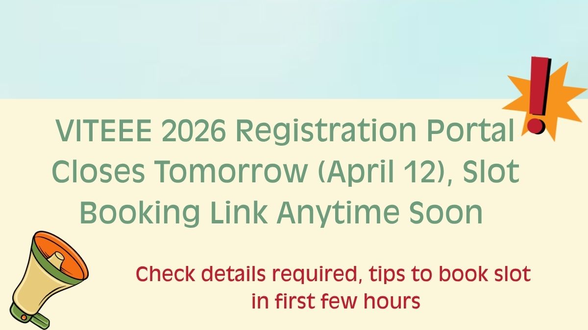 VIT Vellore will close VITEEE 2026 registration window tomorrow (April 12). Students who are yet to complete their form submission must do it soon as possible. Post that, there will be no extensions to register for VIT exam 2026. This is the last chance to secure admission eligibility for BTech at VIT campuses. Applicants who have not made the fee payment must pay a registration fee of INR 1350 using any of the payment modes. The fee is non-refundable and mandatory for acceptance into the VIT 2026 exam and slot booking process. VITEEE 2026 will be conducted from April 28 to May 3.