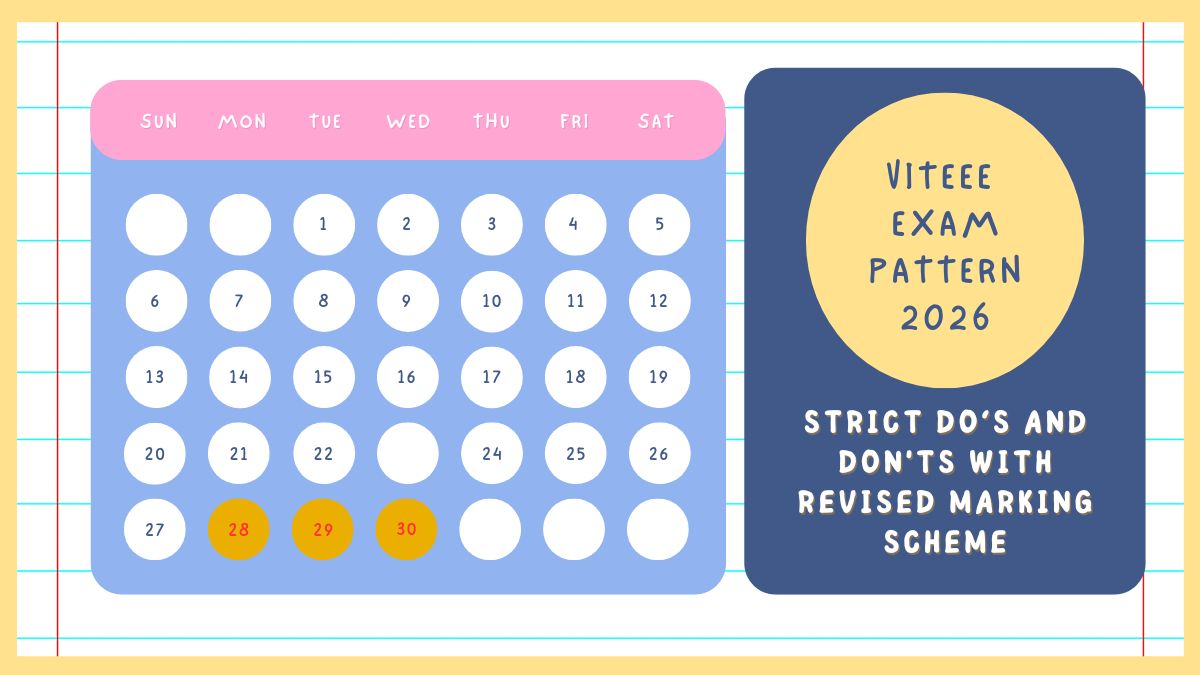 Vellore Institute of Technology will conduct VITEEE 2026 exam from April 28 to May 3 in two shifts. The timings are 9:30 am to 12:00 pm and 2:30 pm to 5:00 pm. This year, students appearing for the VIT 2026 entrance exam must be aware of revised VITEEE exam pattern 2026. Now, students will be awarded 4 marks for correct responses and -1 mark for incorrect answers. With negative marking introduced, students must be careful while attempting questions, as one wrong attempt can drop their VIT rank instantly.