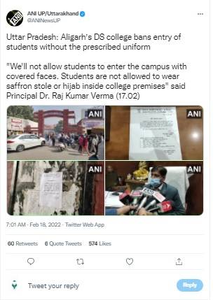 While confirming the development, Raj Kumar Verma, Principal, Dharma Samaj College said, "in order to maintain discipline, the college administration has issued the notice regarding uniforms. We will not allow students’ entry in the premises with covered faces, as some students were recently spotted wearing hijab and burqa on the campus.” He further added that even the saffron scarves will not be allowed inside the campus.